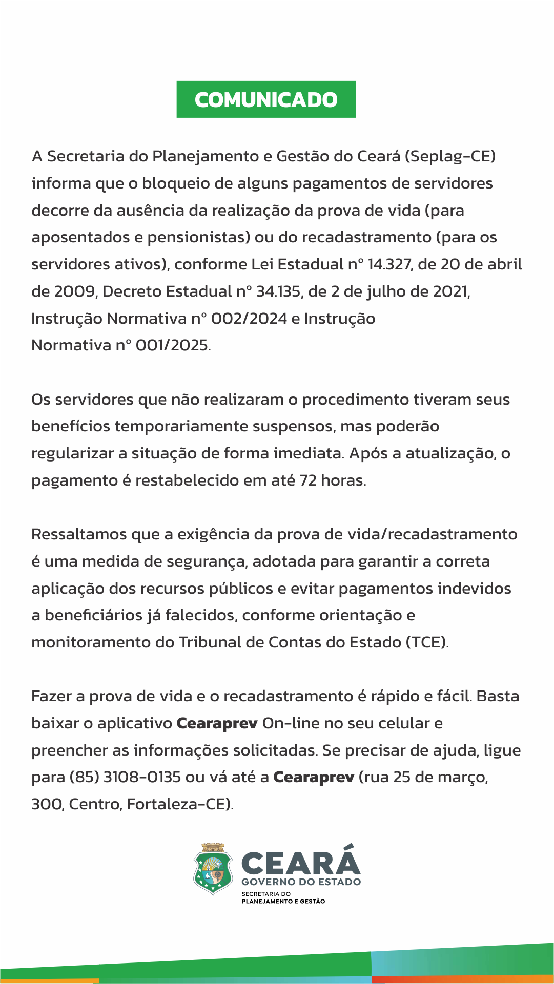Servidores e pensionistas COMUNICADO – Recadastramento e Prova de Vida 1 de outubro de 2025 - 10:59 Voltar ao topo Compartilhar