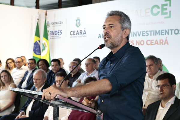Em cerimônia realizada no Palácio da Abolição, em Fortaleza, nesta terça-feira (27), o Banco Nacional de Desenvolvimento Econômico e Social (BNDES), o Governo do Ceará e a Prefeitura de Fortaleza anunciaram um pacote de investimentos voltado ao desenvolvimento do estado, somando R$ 1,1 bilhão em financiamentos aos setores público e privado. O evento contou com a presença do governador Elmano de Freitas, da vice-governadora Jade Romero, e do presidente do órgão federal, Aloizio Mercadante, além do presidente da Assembleia Legislativa do Ceará (Alece), Romeu Aldigueri, secretários de Estado e outras autoridades.